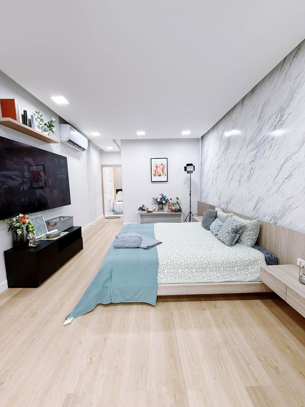 Apartamento cómodo a 3 minutos a pie de la estación de BTS, con cama doble extragrande/guitarra acústica/piscina/gimnasio/tienda 7-11