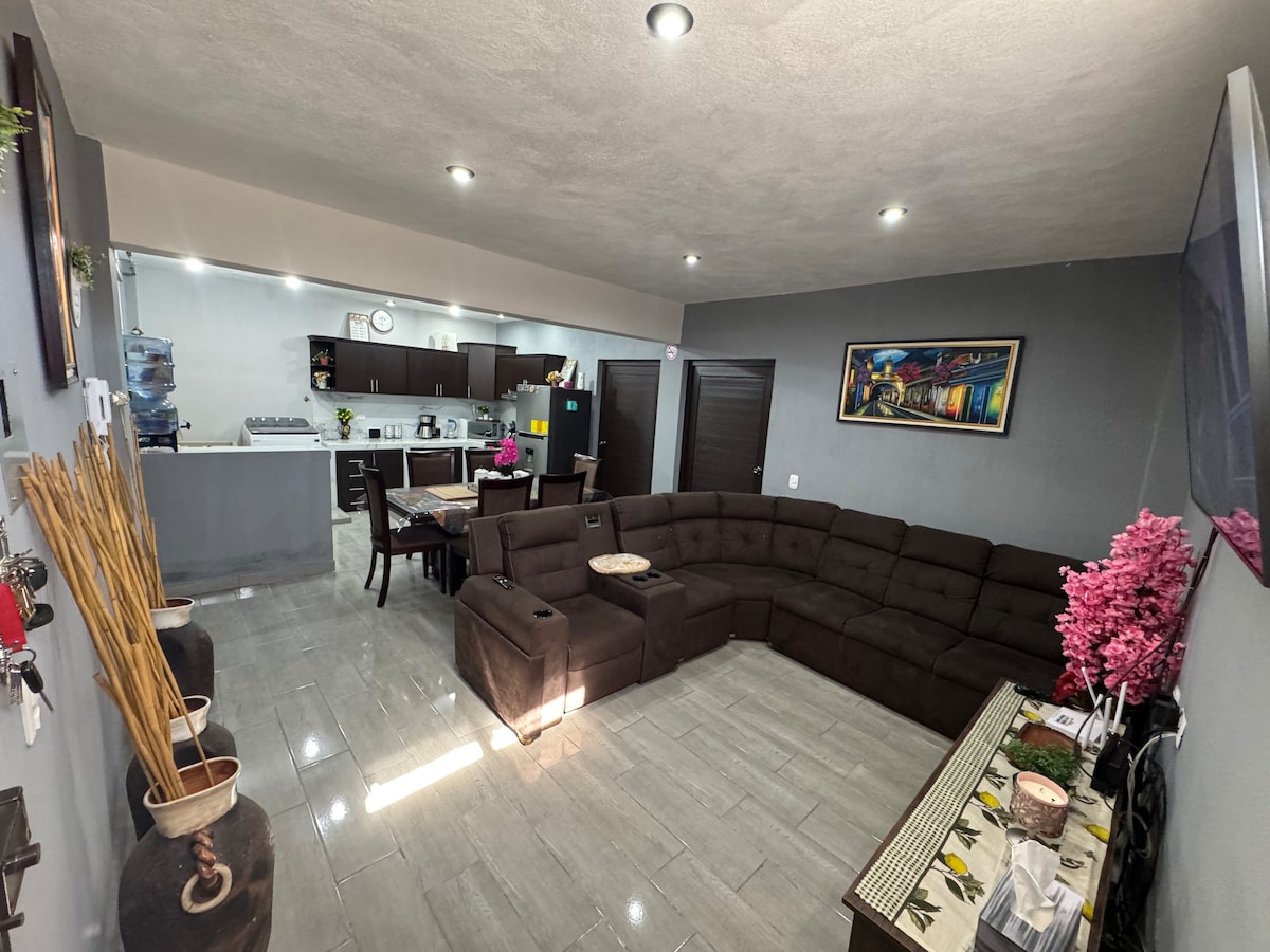 Perfecta para desfrutar del calor con tu familia. Parque acuático y estadio de futbol a 10 minutos, Parque Central a 6 minutos, Plaza San Antonio (taqueria, postre y juegos mecánicos para niños) a 2 minutos.
