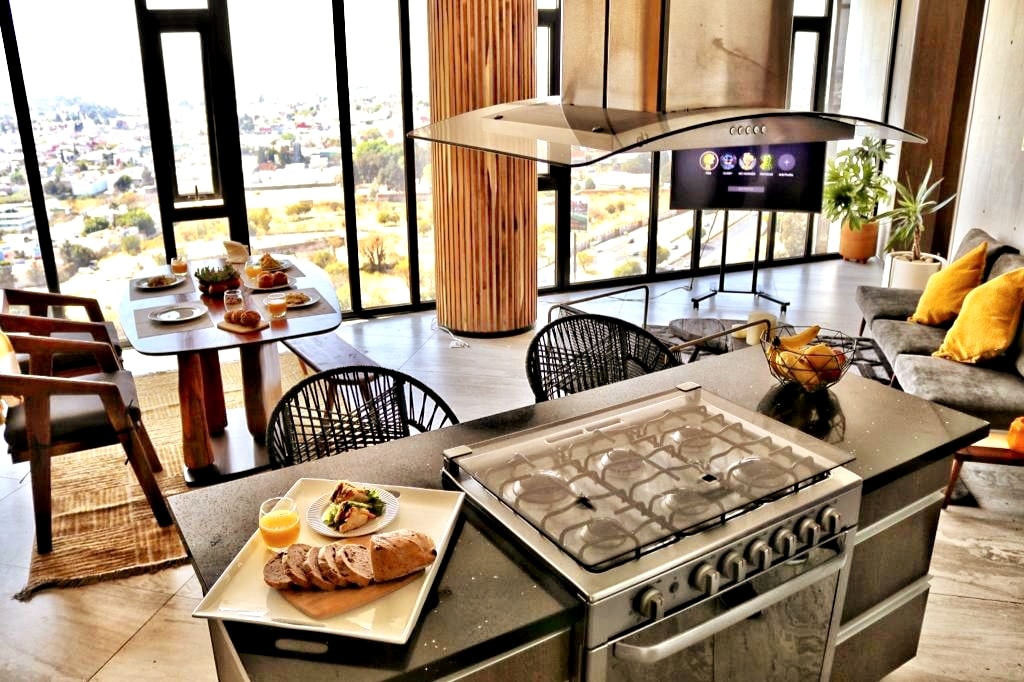 Este lugar único tiene su propio estilo. Departamento en la zona más exclusiva y moderna de Puebla con vista panorámica al Puebla Moderno, en un espacio privado acogedor a unos pasos del centro comercial, Museo Barroco, Parques, entre otros. Disfruta tu estancia con todos los espacios dinámicos sanitizados para tener un momento agradable, así como lo necesario para poder disfrutar y relajarte en estancias cortas o largas. Haz uso de nuestras exclusivas amenidades pensadas en tus necesidades.