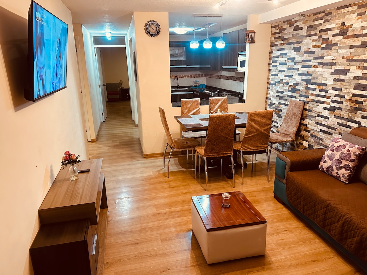 Linda casa de una sola planta con todas las comodidades que necesites, ubicada en un tranquilo y seguro conjunto residencial a diez minutos del centro de la ciudad. Con una impresionante vista panorámica de la majestuosa montaña. La casa cuenta con sala, cocina, comedor, tres dormitorios con camas matrimoniales individual dos baños completos, con capacidad para 7 huéspedes. También incluye una terraza y una zona de lavandería. Conexión wifi, estacionamiento gratuito y dos televisores por cable.