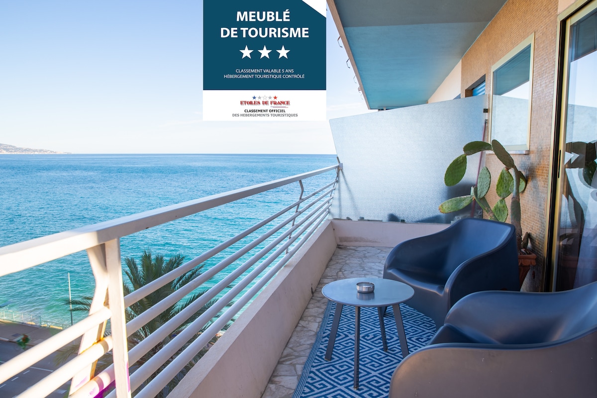 estudio de 24 m2 con todas las comodidades aprobado con 3 estrellas por la oficina de turismo, centro de la ciudad, frente al mar, impresionantes vistas al mar 5.ª planta con ascensor, edificio con conserjería y parque, cerca de tiendas y restaurantes, calle peatonal, a 10 km de Mónaco, a 4 km de Italia Se ofrecen aperitivos y ropa de cama gratis. Ya no puedo alquilar el garaje en el parque porque mi amigo lo vendió hay muchos aparcamientos en los alrededores e incluso plazas gratuitas