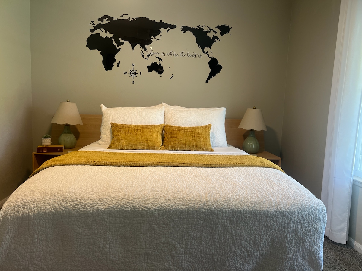 Amplia suite privada con entrada independiente y acceso por teclado, totalmente separada de la casa principal. Cuenta con baño privado, Wi-Fi, TV grande, mini refrigerador, microondas y área de descanso. Acomoda hasta 3 personas con una cama king size y una cama full opcional. Ubicada en una casa histórica de 1895; por tuberías antiguas, el papel higiénico debe desecharse en el bote. Espacio tranquilo, no se permiten fiestas. Vivo en la propiedad y respeto totalmente su privacidad.
