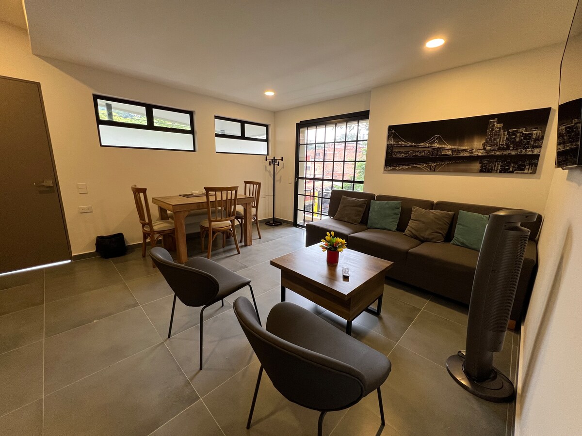 Ven a nuestro loft urbano, donde la elegancia industrial se encuentra con la comodidad moderna en el epicentro de la vida urbana de Medellín. Disfruta un ambiente moderno, techos altos, paredes de ladrillo expuesto y detalles industriales que fusionan la historia con el diseño contemporáneo. Estarás rodeado de los mejores restaurantes, boutiques y lugares de entretenimiento en un edificio con todas las comodidades y vigilancia 24/7.