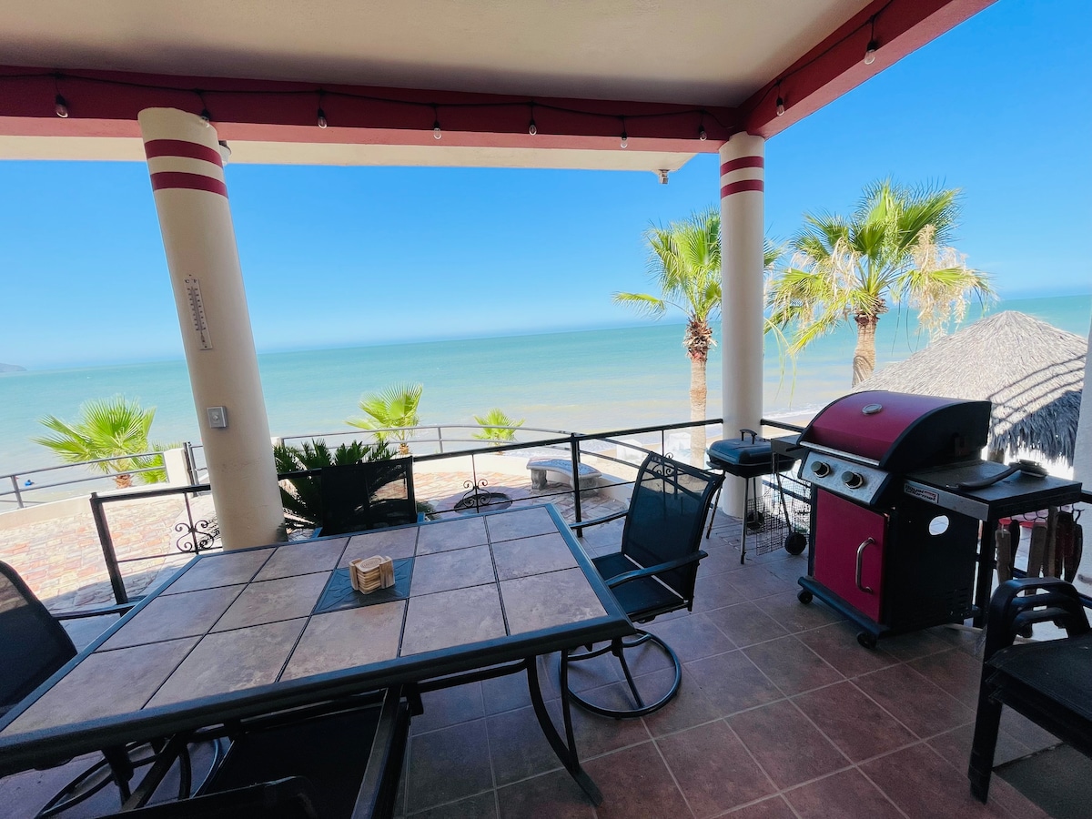 Pequeña casita estudio para no fumadores con vista al mar de Cortés y al campo de golf EDR. A pocos pasos del restaurante Pete's Camp. A pie de la playa. Patio en la azotea, ahora con estructura de sombra. La unidad tiene una cama tamaño queen y una pequeña cocina (pequeño refrigerador) con sartén eléctrica y parrilla George Forman, microondas y cafetera, y acceso a un área de barbacoa compartida. El baño tiene una ducha grande. (Solo hay fregadero en la cocina) TV con Chromecast y reproductor de DVD. Dos ventiladores de techo y aire acondicionado/calentador mini-split. Mesa con 2 sillas en el patio. 2 noches como mínimo.