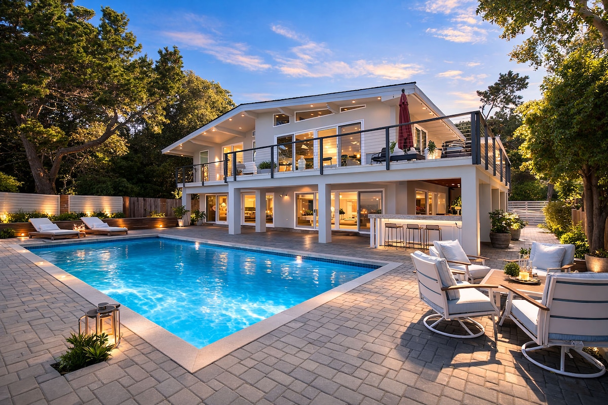 Eria Stay on Paradise is a modern luxury waterfront Airbnb in Corte Madera, Marin County, near San Francisco. This family-friendly vacation home features 5 bedrooms / 5 beds and can accommodate up to 16 guests with advance notice for additional sleeping in the living room (trundles/mattresses). Enjoy a private patio, pool, and hot tub in a serene waterfront setting. Pets welcome. No events or parties. Pool and hot tub heating charged additionally and available with 72 hours’ notice.