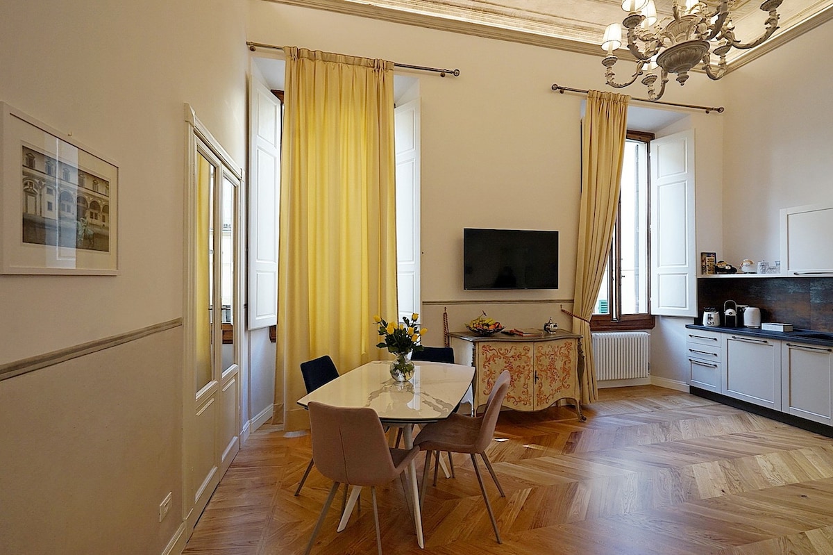 “Dante”: sumérgete en la esencia de Florencia en este refinado estudio de 30 metros cuadrados, ubicado en el primer piso de un palacio histórico en Via dei Calzaiuoli, a solo unos pasos del majestuoso Duomo. Una joya rara en el corazón de la ciudad, la terraza privada de 35 metros cuadrados ofrece un refugio tranquilo con una mesa, sombrilla y sillas, perfecto para desayunos al aire libre, almuerzos soleados o aperitivos al atardecer. El aire acondicionado, la calefacción central y el acceso al ascensor garantizan una estancia cómoda y fácil.
