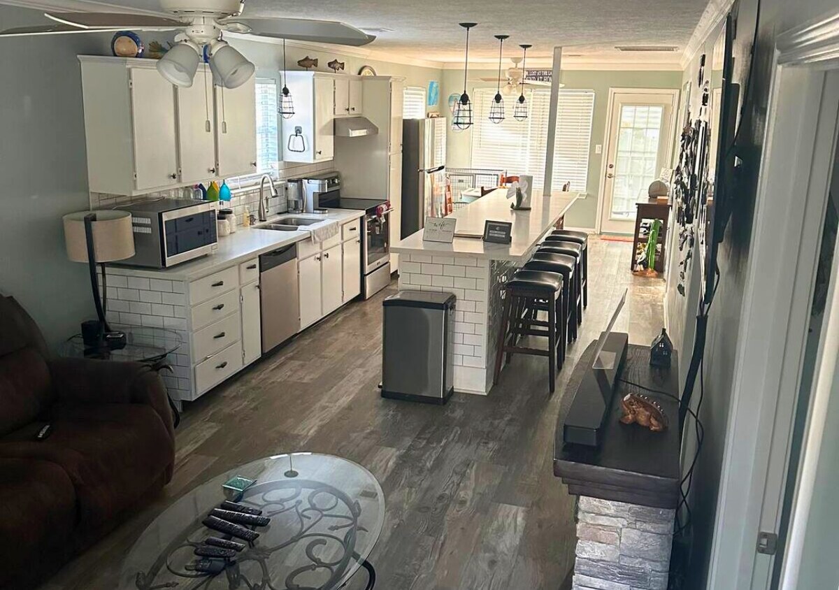 Unas vacaciones en una casa de rancho de dos dormitorios construida a medida en un lujoso centro vacacional de casas rodantes en el lago Livingston en Onalaska, Texas, ofrece la combinación perfecta de comodidad, diversión familiar y relajación junto al lago. Este refugio ofrece lo mejor de la relajación y la aventura, lo que hace que cada momento sea especial. La piscina del centro vacacional es un paraíso tanto para niños como para adultos. Mientras los más pequeños chapotean, los padres pueden relajarse en el bar en la piscina, bebiendo bebidas refrescantes bajo el sol.