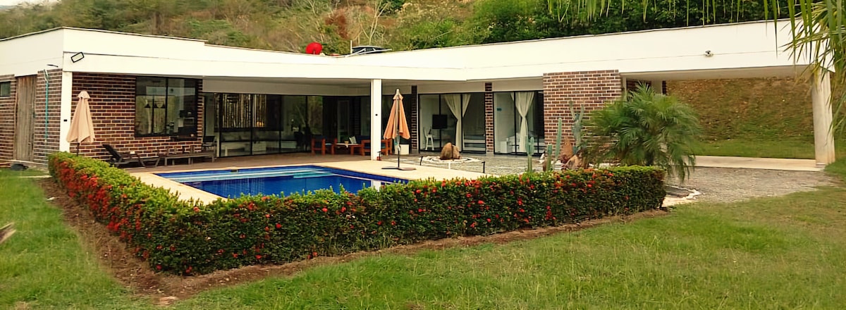 Que detalle¡¡¡ Un sitio para un plan de descanso muy familiar. Amplias zonas verdes, áreas totalmente independientes. Piscina, asador y kiosko, comodamente distanciados de la casa. Disfrute de la tranquilidad de un verdadero descanso con un clima soleado tropical y agradable. Si quieres estar confortable y descansar. Visítanos!!!! Los esperamos¡¡¡ para ser sus anfitriones. La tasa de aseo se encuentra incluida en la tarifa.