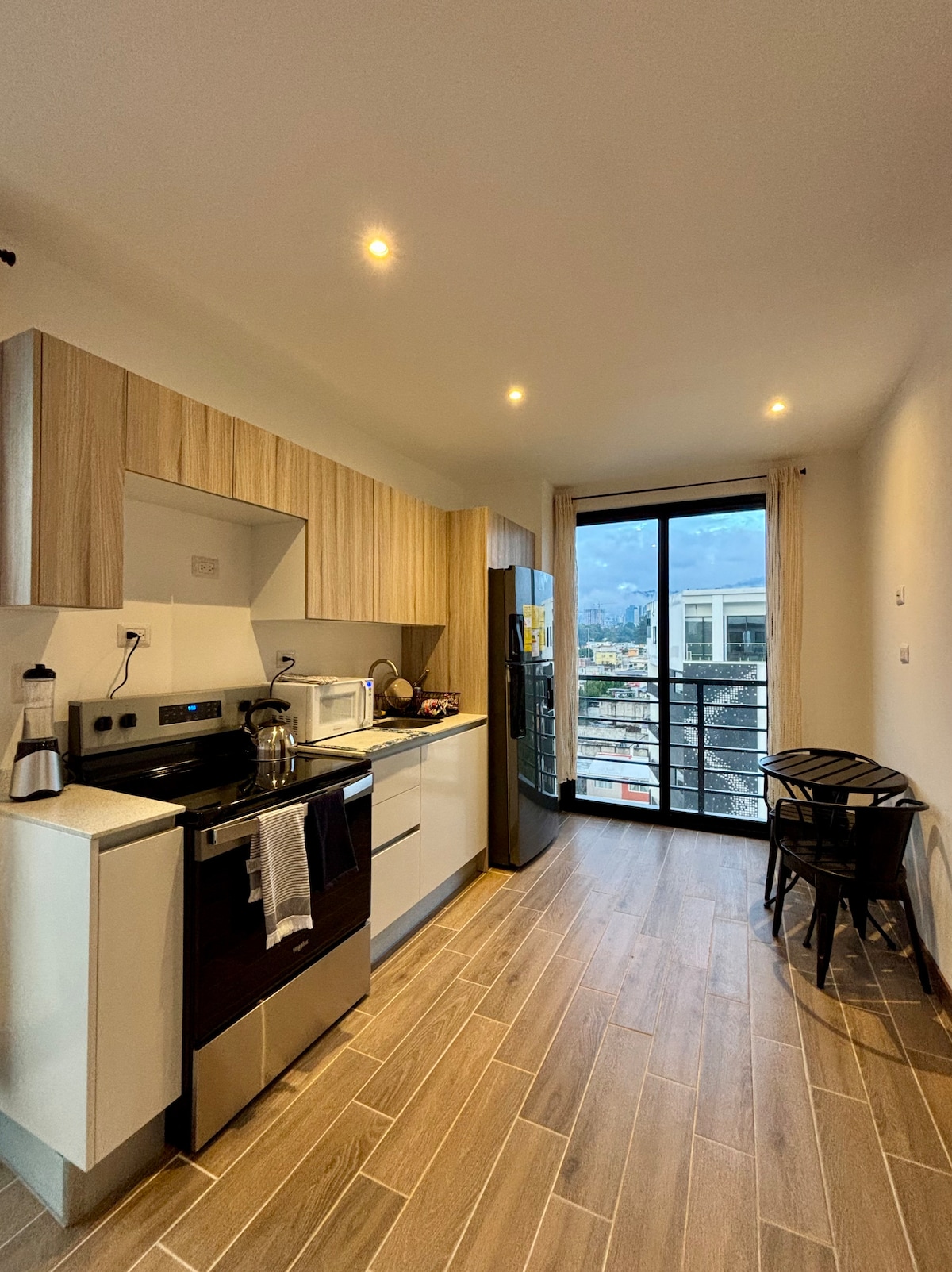 Disfruta de vistas espectaculares e inigualables a los volcanes desde el balcón en este moderno estudio. El apartamento esta esta 100% equipado con amenidades de alta calidad. Desde una cama queen y un sofá cama, hasta una cocina totalmente equipada y cortinas blackout. Incluye un espacio de estacionamiento, acceso al gimnasio y a la tienda de conveniencia del edificio. A solo 8 minutos del aeropuerto, es el lugar perfecto para ti