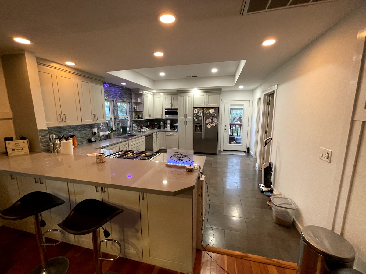 Casa de campo de 2 dormitorios/2 baños; 20% de descuento para más de 30 días. El check-in autónomo es con código sin llave y sistema de seguridad. Convenientemente ubicado en un vecindario tranquilo, pero muy cerca de universidades, hospitales + industria tecnológica. Dos dormitorios con baño privado con colchones king y queen nuevos. Suelos de baño climatizados y calentador de toallas, ducha principal de bajo umbral con granito brasileño iluminado. Un jardín grande, privado y completamente vallado te espera. Calefacción/aire acondicionado nuevos. Se admiten mascotas. La tarifa por mascota es un cargo adicional. Por favor, pregunta.