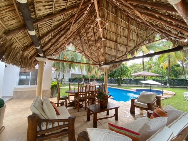 Casa de Playa! Descubra el encanto y la sofisticación en nuestra propiedad oasis de 4 dormitorios y 4,5 baños Piscina privada perfecta para familias grandes. La propiedad está rodeada de exuberante vegetación. Comodidad de lujo, cocina y baños están completamente equipados. Ubicado en un residencial exclusivo en Puerto San José. Las comodidades del vecindario incluyen casa club, tenis, cancha de volleyball de arena, y entrada privada a la playa. A sólo minutos del centro, tiendas y restaurantes.