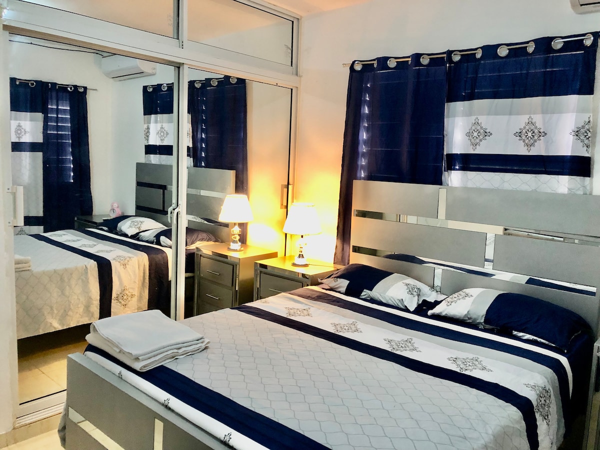 En zona residencial y céntrica. Con todo lo necesario para estancia familiar. WI-FI, Smart TV, Aire Acondicionado en Habitaciones, Calentador de Agua, Electrodomesticos nuevos, cocina bien equipada con licuadora, microondas, air fryer, etc. 3 habitaciones Sala comoda y fresca con sofá cama para 2 personas. Ideal para viajes familiares, Descanso, Turismo Ecológico (Pico Duarte, senderismo) Cerca del Estadio Deportivo y de supermercado, tienda, ferreteria, farmacia, cafeterias...
