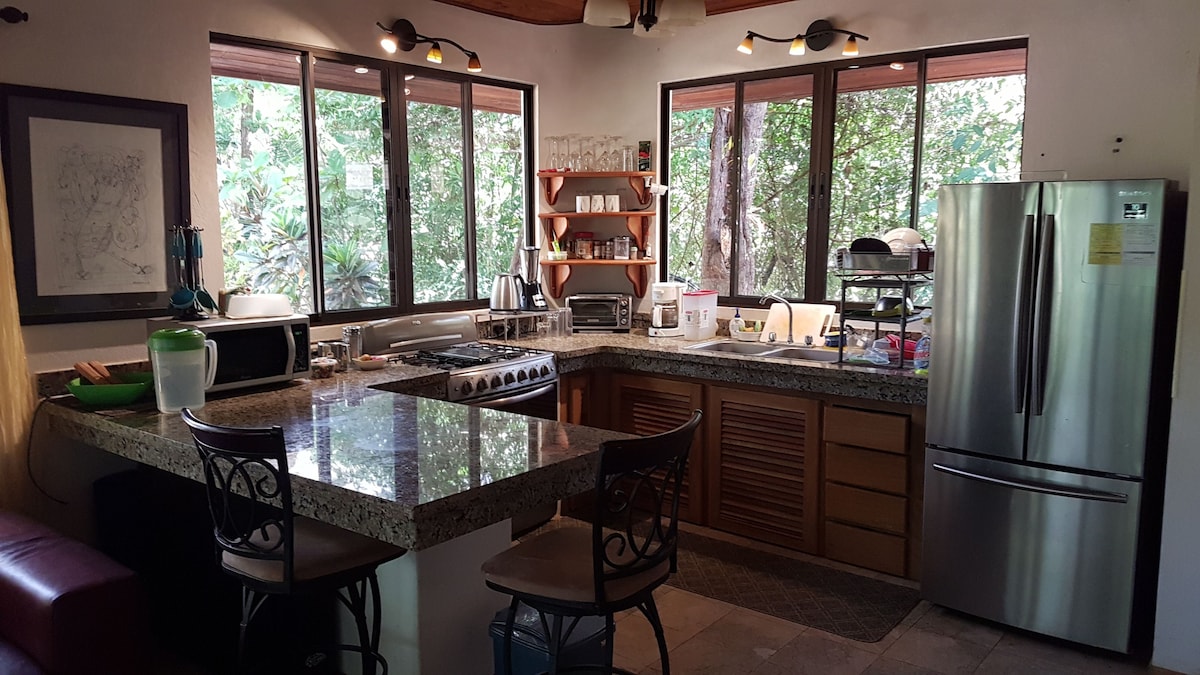 Casita 5 Cozy jungle casita designed for a peaceful stay, fully immersed in nature. Includes: -Queen bed -Single bed -Private bathroom -Private terrace with jungle views -Kitchen There are no glass windows. Instead, the cabin features large screened openings with high-quality mosquito nets. Free yoga classes are offered Monday to Saturday at 7:30 am in our open-air Shala. Breakfast included For reservations made after January 20, 2026, a simple Costa Rican breakfast is included in your stay.