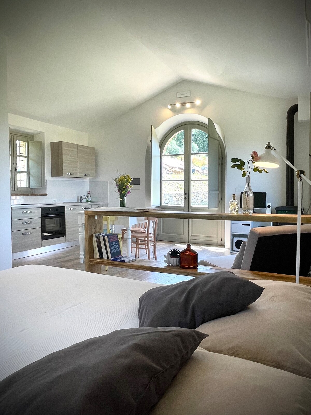 En 2023, mi hijo Guglielmo y yo decidimos restaurar el antiguo oratorio de una iglesia de 1600 creando un apartamento de dos plantas: arriba tenemos 2 dormitorios equipados con aire acondicionado y 2 baños en suite con ducha; abajo una amplia sala de estar con estéreo Disponible una mesa afuera con gran vista. y un bonito jardín a 50 metros de distancia donde tener una degustación de vinos privada o una barbacoa para todos los huéspedes de nuestros 4 apartamentos, después de las 7:00 p. m. si se reserva con mucha antelación Amplio estacionamiento gratuito a 100 metros de distancia.
