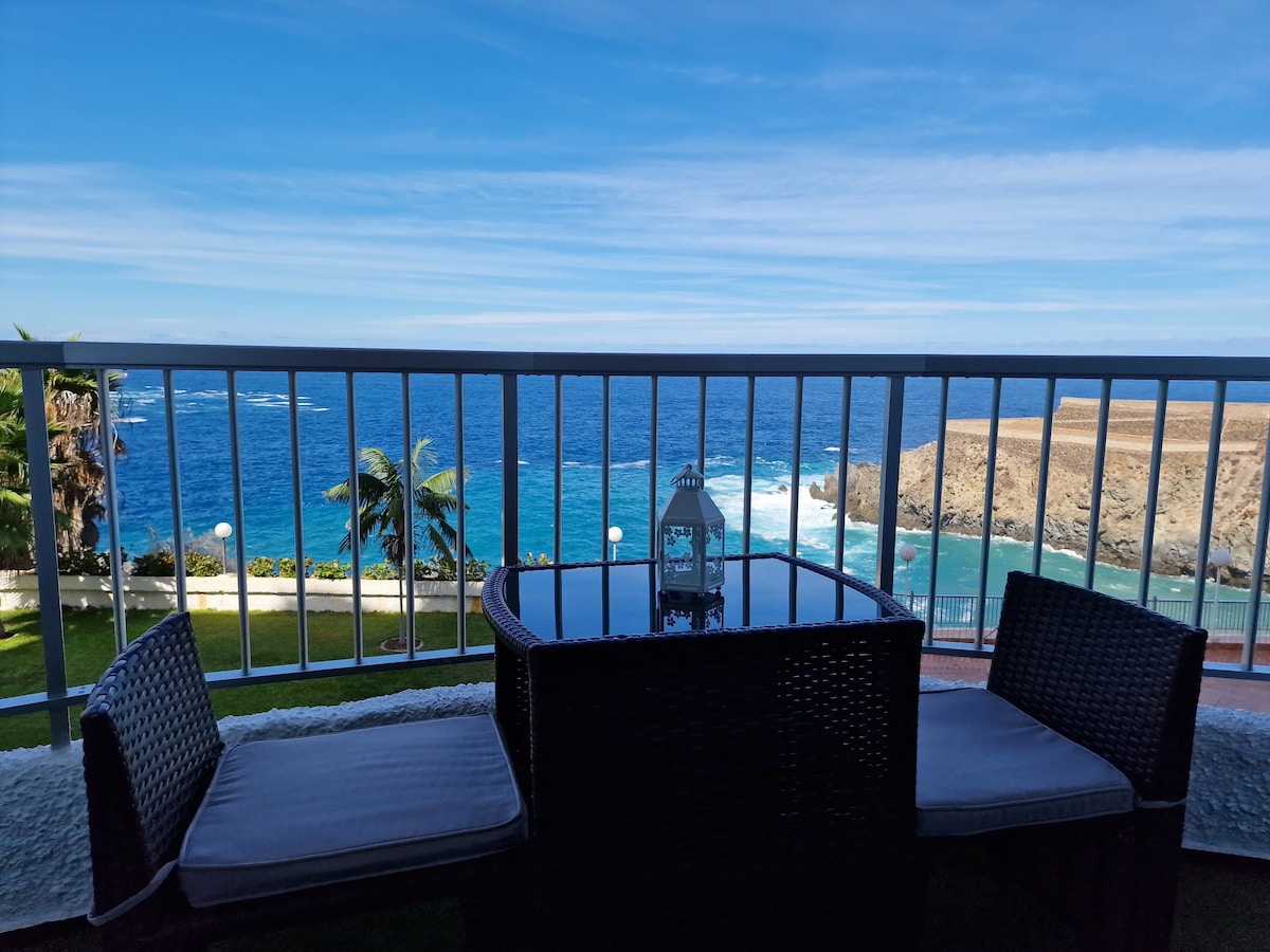 Confortable apartamento ubicado a primera línea de costa, con maravillosas vistas al mar y al acantilado. Buena iluminación natural y a pie de playa, es perfecto para disfrutar de la tranquilidad y el descanso. En la planta baja hay un restaurante donde podrás saborear diferentes menús. También hay farmacia, supermercado y parada de autobús muy cerca. El centro de la ciudad está a diez minutos, pudiendo visitar el drago milenario , ir de tiendas y degustar los vinos locales.