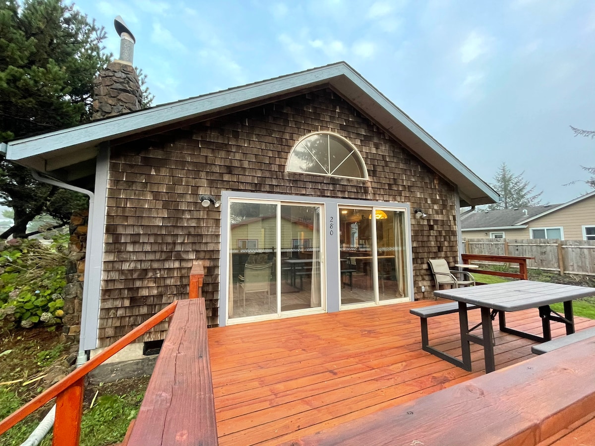 Recientemente actualizamos el dormitorio de invitados para reemplazar las viejas camas nido con una nueva cama tamaño queen y TV de pantalla plana. Nuestro pequeño trozo de cielo ubicado a 2 manzanas de una de las playas más bonitas de Oregón. Las visitas de verano incluyen acceso opcional a Bayshore Clubhouse (tarifa adicional para huéspedes) con piscina climatizada, sala de recreo y mucho más. 1 cama tamaño king, 1 cama tamaño queen, futón doble pequeño, 2 baños, bañera grande con vista al mar, satélite, wifi, reproductor de Blu-ray. Cocina totalmente equipada, barbacoa y estufa de leña.