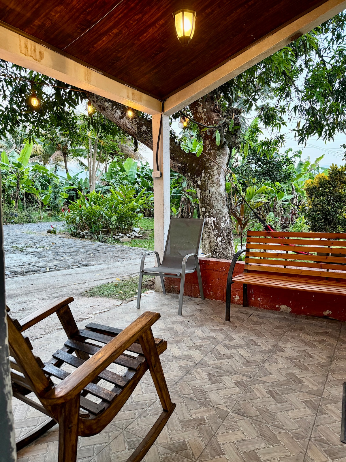 Pequeña casa de 2 habitaciones y area de pergola abierta con sala, comedor, cocina, jardin y jacussi. Se encuentra en las orillas de Retalhuleu, en un terreno con mucha vegetacion, a tan solo 5 cuadras del centro de la ciudad, a 15 o 20min en carro de los parques del IRTRA y a 45 min de Puerto Champerico