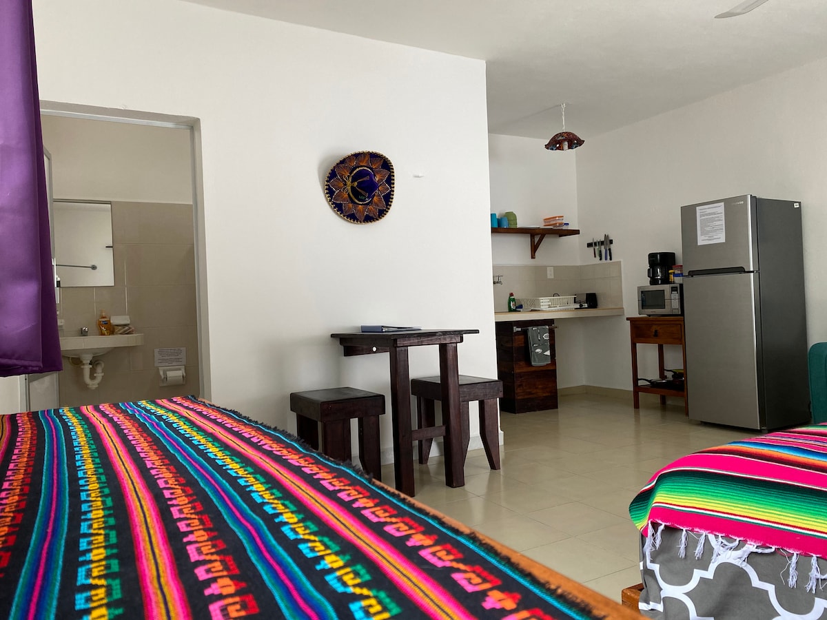 Gema's Studio in Casa Xel-Ha has everything you need to enjoy your stay in this tropical paradise. Fully equipped spaces. Just 2 blocks from the main avenue and the sea, 1 block from the shopping center, the area is very quiet for the good rest of the guests/Beto's Studio en Casa Xel-Ha será el lugar ideal para tu estadía en la isla. Espacios totalmente equipados para la tranquilidad de los huéspedes. A tan solo 2 cuadras de la avenida principal y del mar, a 1 cuadra del centro comercial.