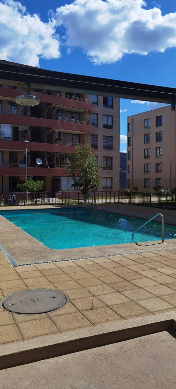 Acogedor departamento con hermosa vista a la cordillera. Disfruta una estadía cómoda en una ubicación privilegiada: a pasos del terminal de buses, supermercado Jumbo, hospital y del centro de Chillán. Ideal para viajes de trabajo o descanso. Cuenta con 3 dormitorios amplios, 2 baños completos, cocina equipada, living-comedor con aire acondicionado, WiFi, TV, estacionamiento, Seguridad 24/7, espacios comunes y piscina