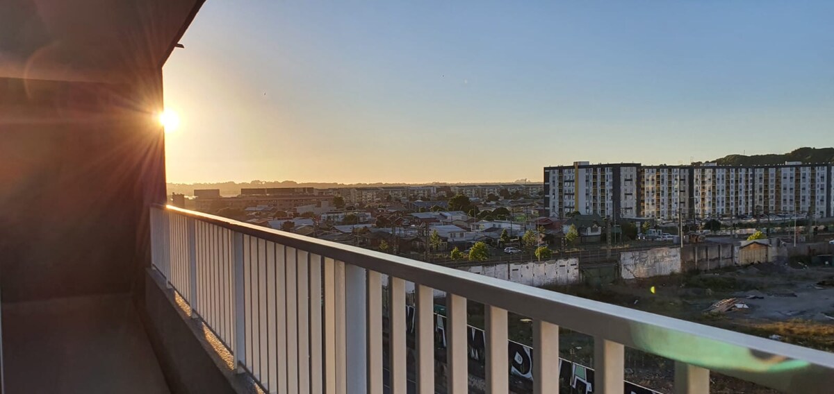 Acogedor departamento vista panorámica de la ciudad. A solo 5 minutos de la Laguna Grande, pubs, restaurantes, supermercados, bancos y más. Con fácil acceso a transporte público y estación de metro, conectando en pocos minutos con el centro de Concepción, el aeropuerto, centros comerciales y otras atracciones. Disfruta de un espacio luminoso, cómodo y totalmente equipado, ideal tanto para viajes de trabajo como para escapadas de descanso. ¡Tu base perfecta para explorar la ciudad!