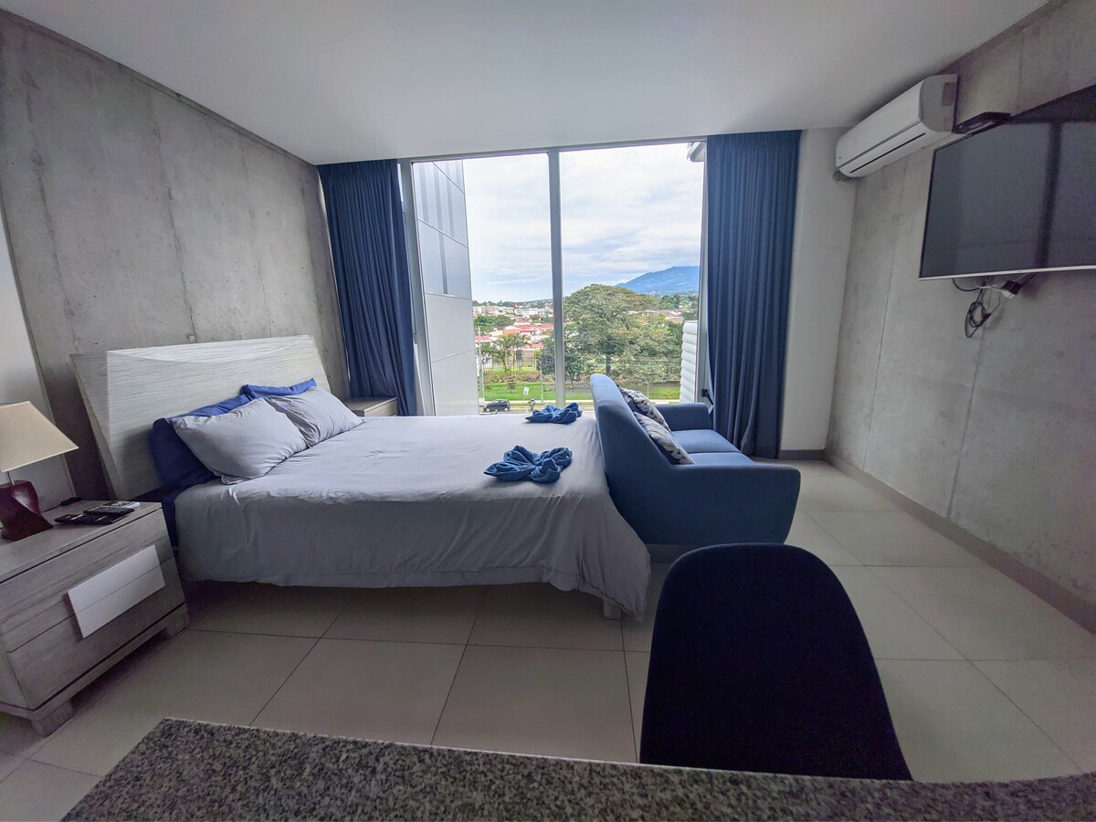 Alchemy Studio is a contemporary style comfortable space designed for single guests or couples who are looking for a private apartment that offers high end commodities at an affordable price. It is located strategically in the heart of San Pedro an academic & multicultural town located close to Bario Escalante an emerging gastronomic area & San Jose Downtown. You can find Restaurants, Public and Private Banks, ATMs, Pharmacies, Supermarkets and Public Transportation only steps way.