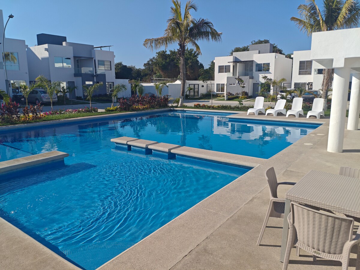 Relájate con toda la familia en este alojamiento donde la tranquilidad se respira. Disfruta de una estancia cómoda y moderna en este departamento nuevo, a 15 minutos de las playas de Nuevo Nayarit y 45 minutos del malecón de Puerto Vallarta. Cuenta con tres habitaciones y dos baños completos. Aire acondicionado en las áreas principales. con cocina equipada y aire acondicionado. Está frente a la alberca del coto. Cerca encontrarás centros comerciales.