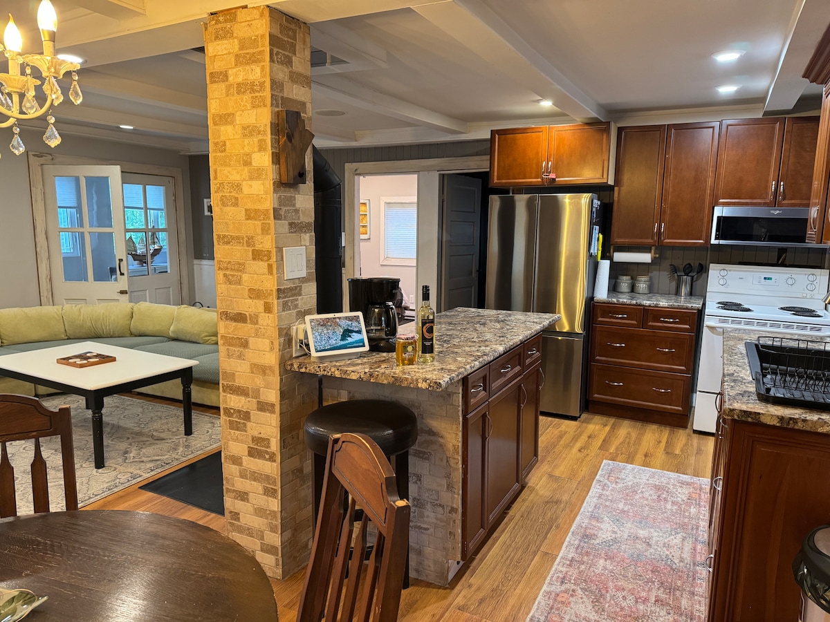 ¡Hermosa cabaña de 5 dormitorios y 3 baños completos en el agua con una playa privada! El espacio cuenta con una sala de estar principal luminosa y espaciosa y de concepto abierto con vistas al agua. Un sótano completamente terminado cuenta con actividades como ping pong, futbolín, una sala de juegos personalizada recién agregada, máquina de skeeball, chimenea de gas y bar. La cabaña cuenta con una terraza frente al agua y totalmente cubierta. LICENCIA DE ALQUILER DE CORTA DURACIÓN NO. GSTR-25-035