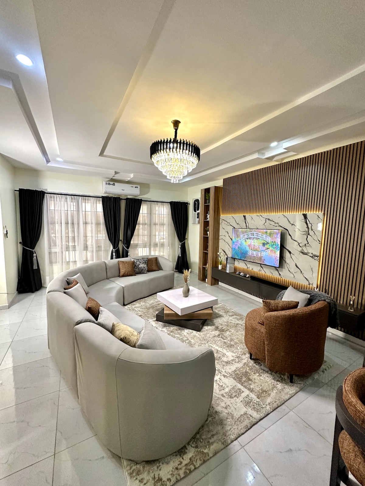 Experimenta un lujo en el corazón de Lekki Disfruta de la mezcla perfecta de elegancia moderna y sofisticación en esta casa amueblada por diseñadores en Lekki, Lagos. Cuidadosamente seleccionado para viajeros de negocios, familias, parejas, este refugio de lujo ofrece una mezcla perfecta de comodidad, conveniencia y estilo. Relájate en un amplio espacio habitable decorado con buen gusto, disfruta de comodidades de alta gama (como suministro de energía 24/7, seguridad) y sumérgete en la vibrante energía de uno de los vecindarios más exclusivos de Lagos.