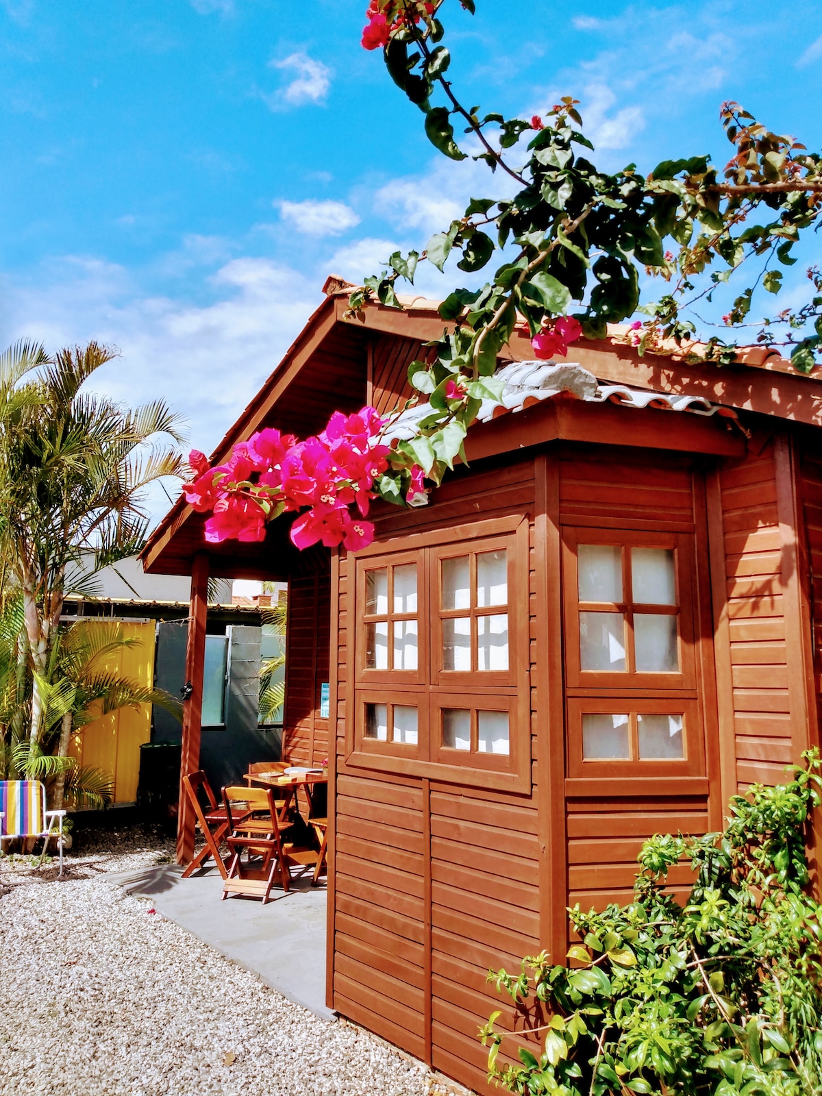 Bungalow en una propiedad compartida a 80 metros de la laguna, lugar ideal para practicar kitesurf. ¡Entrada privada y privacidad! La región está rodeada de naturaleza y a 15 minutos a pie del centro de la ciudad de Lagoa. A 1 minuto a pie de una parada de autobús. El bungalow está compuesto por una terraza cubierta externa con mesa de comedor, cocina equipada, baño completo y una habitación grande con zona de trabajo y balcón. ¡Un lugar cómodo para relajarse, disfrutar de la vida y del canto de los pájaros! ¡Perfecto para parejas, solteros y trabajar a distancia!