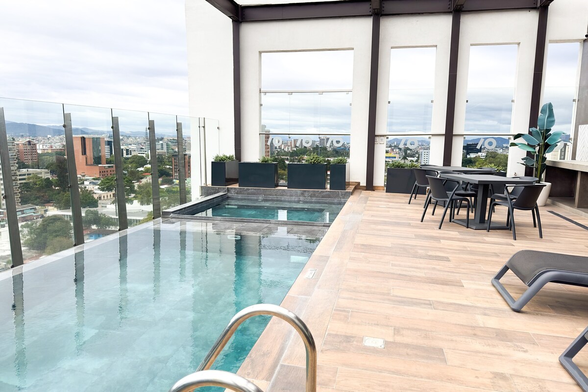 Zona 10, con A/C en el dormitorio, Piscina + Gym