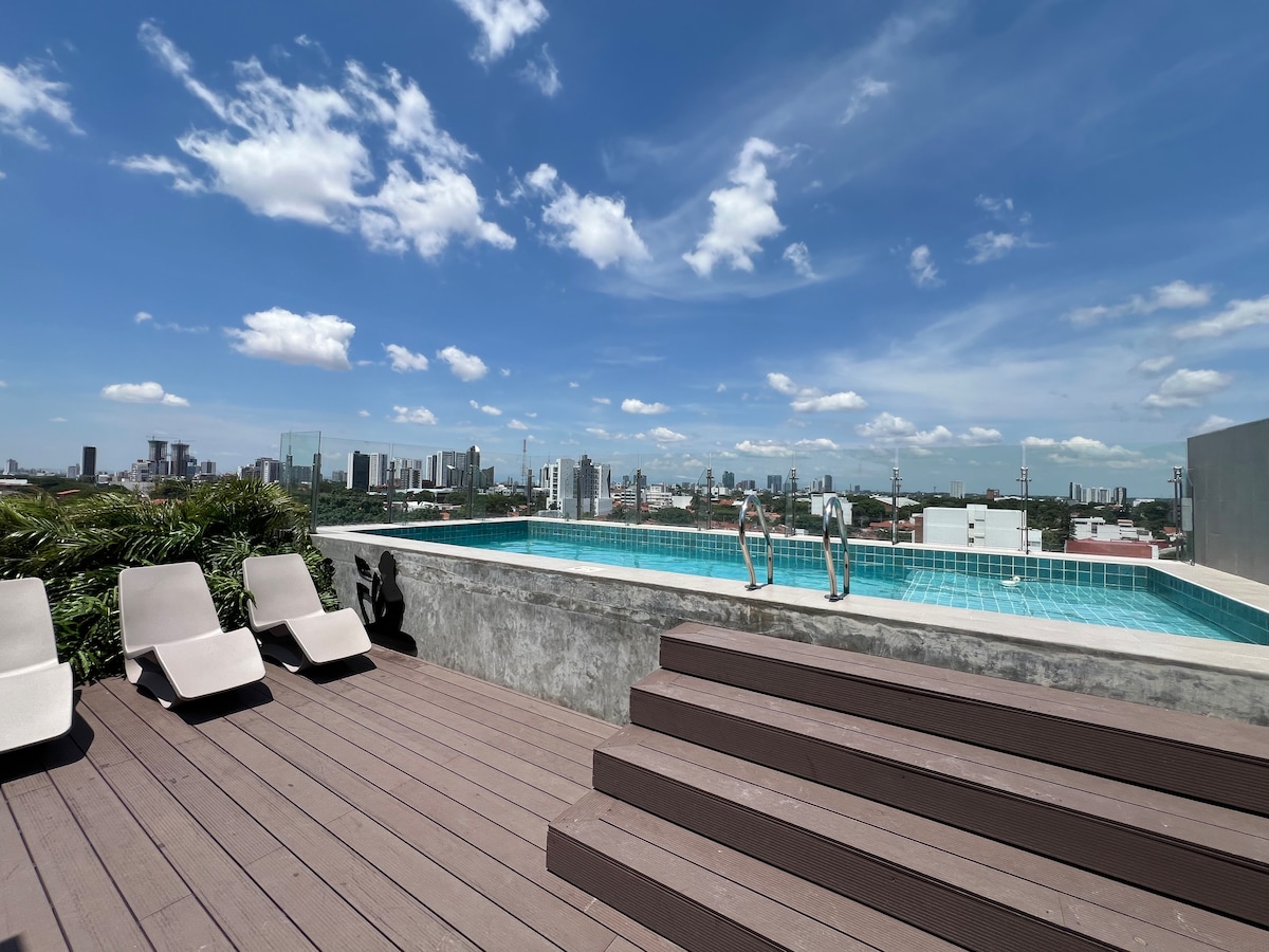 ✨ Un espacio diseñado para su confort y descanso. Ubicado en una zona segura y tranquila, este departamento combina modernidad, comodidad y tecnología para brindarle una experiencia única. Perfecto para viajeros de negocios, parejas o familias pequeñas, el alojamiento ofrece WiFi de alta velocidad, aire acondicionado y entretenimiento premium, además de acceso a una piscina, gimnasio y parqueo gratuito. 📌 ¡Disfrute de una estancia inolvidable con todas las comodidades que merece!
