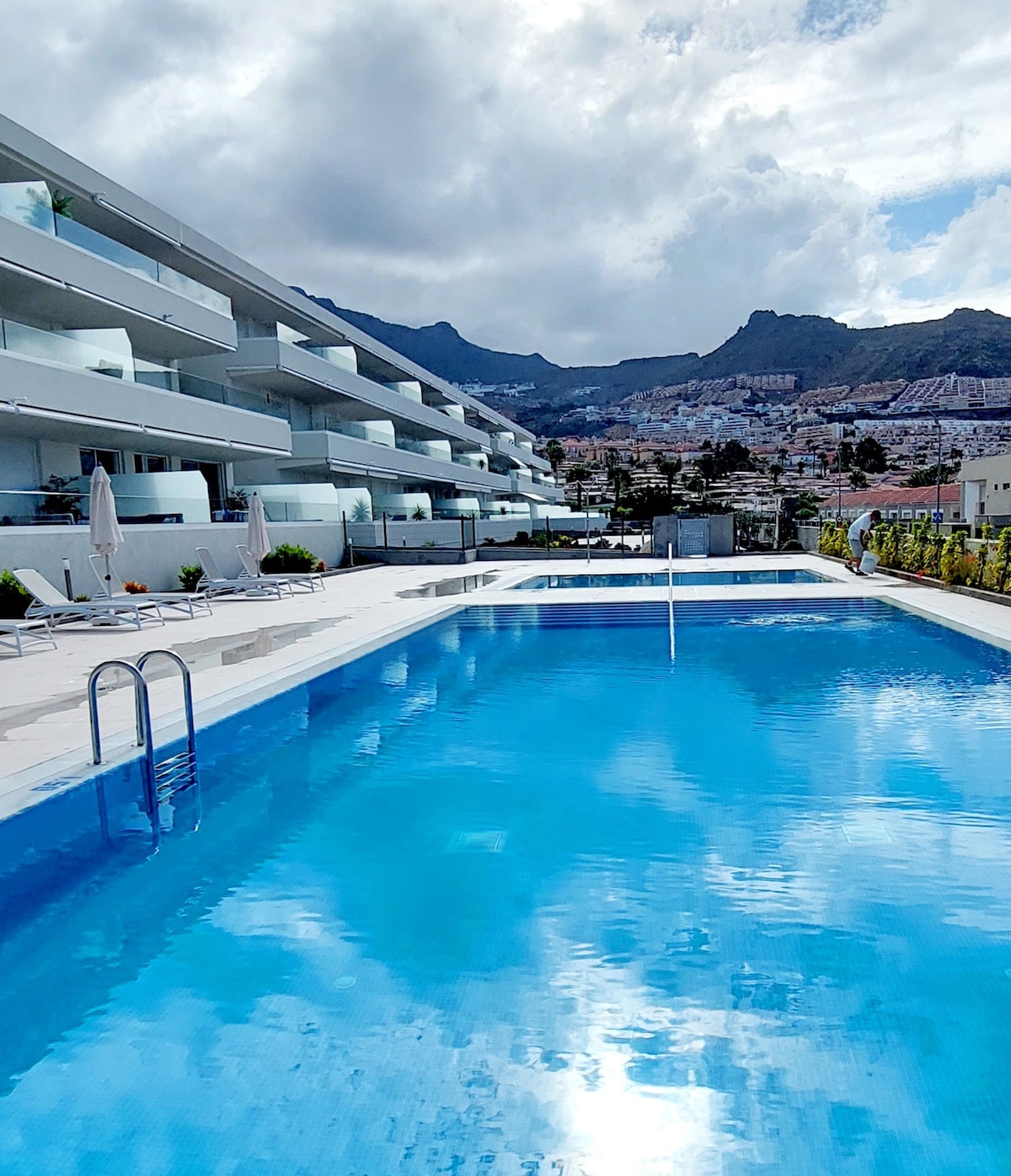 MODERN 138 m2, 3 habitaciones, 5 camas, 2 baños. Construido en 2023. Terraza soleada todo el año de 40 m2. Aire acondicionado, Internet rápido WiFi 600 Mb, dos TV 75 y 55, dos piscinas climatizadas, parking individual en garaje. La mejor playa de El Duque está a 20 minutos a pie o 5 minutos en coche. Cerca del centro comercial X SUR y de todos los servicios como bares, restaurantes. A pesar de su proximidad al centro de Costa Adeje, es una zona tranquila. Un lugar ideal para familias y parejas.