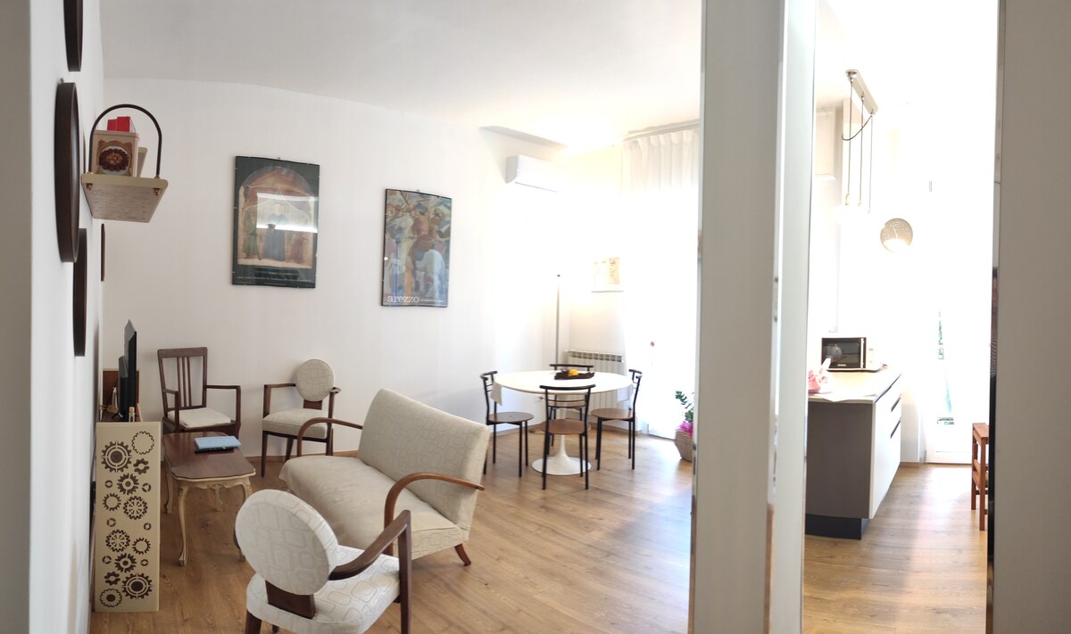 Grazioso appartamento situato a 800 mt dal centro storico e dalla stazione, al quarto piano con doppio ascensore di un palazzo di pregio di Arezzo. A un km dalle principali attrazioni della città, raggiungibili a piedi, dotato di ogni comfort e arredato in maniera funzionale per qualsiasi tipo di viaggiatore. L' appartamento è situato in una posizione strategica: sono presenti numerosissime strutture nelle vicinanze come supermercati, centri commerciali, farmacie e ristoranti.