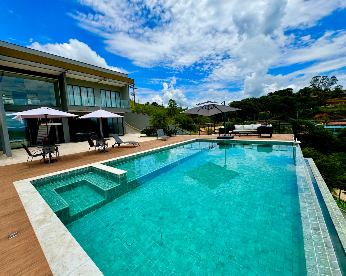 Imagínate relajándote con una vista increíble de las montañas de Igaratá. Nuestro hogar es la escapada perfecta de la rutina. Disfruta de la piscina privada y del jacuzzi climatizado bajo las estrellas. Por la noche, el ambiente es aún más especial con la chimenea o en la zona gourmet completa con parrilla y horno de pizza. Ideal para familias y amigos, con un césped amplio y seguro para niños y mascotas. Conectividad garantizada con wifi de alta velocidad. ¡Ven y crea recuerdos inolvidables!