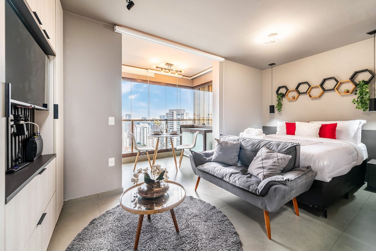 Estudio de 29 m², con decoración de alto estándar pensado para estancias cortas o largas. Perfecto para parejas, personas que viajan solas por placer/trabajo o familias con un hijo. Estructura para hasta 3 personas. Apartamento a 700 metros de la estación de São Judas en una calle tranquila y silenciosa. Estructura completa para recibirle con gran comodidad, seguridad, accesibilidad y ubicación. Cerca de São Paulo Expo, Aeropuerto de Congonhas, Shopping Plaza Sul, Blue Fit y Estación de Metro São Judas (línea azul).