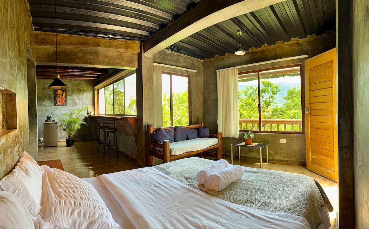Perfecto para desconectar y descansar con una increíble vista hacia el valle de Mindo. Un espacio diseñado y armonizado en torno a los elementos de la naturaleza. La luz natural, el aire fresco, cantos de tucanes y la armoniosa ubicación permiten sentirse en un retiro de paz a pocos minutos del centro poblado.
