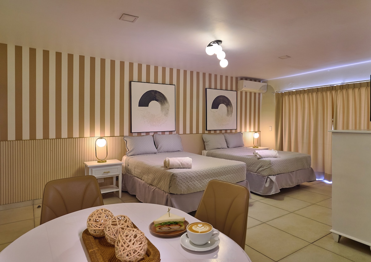 Dormitorios de lujo del Malecón convenientemente ubicados en la famosa franja de Santo Domingo (El Malecón). Cerca de las principales atracciones turísticas y franquicias. Seguridad 24/7 y estacionamiento GRATUITO disponible. "La disponibilidad de las habitaciones se asigna según el pedido de reservaciones". Desayuno gratuito (continental} de 7: 00 a. m. a 9: 00 a. m.