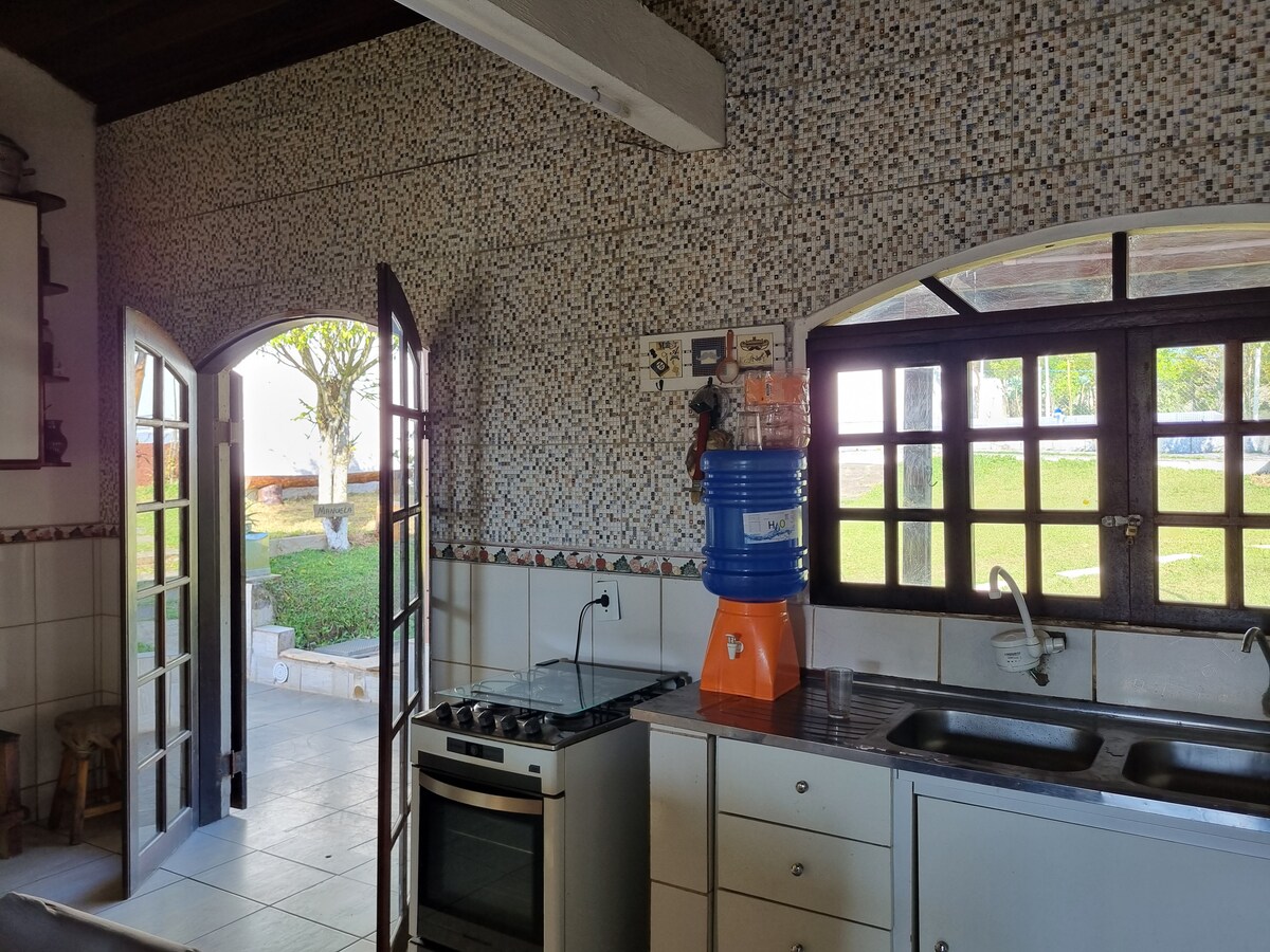 Relájese con toda la familia en este alojamiento tranquilo. Casa dentro de un condominio cerrado ambiente familiar, en medio de la naturaleza y muy verde con toda seguridad. Espacio para caminar y andar en bicicleta dentro del condominio, a 10 km del centro de Riacho Grande SBC, a 4 km del Parque Estatal Caminhos do Mar, cerca de Estancia Alto da Serra, Pousada dos Pescadores, Estrada do Sal. Casero en la parte de atrás.