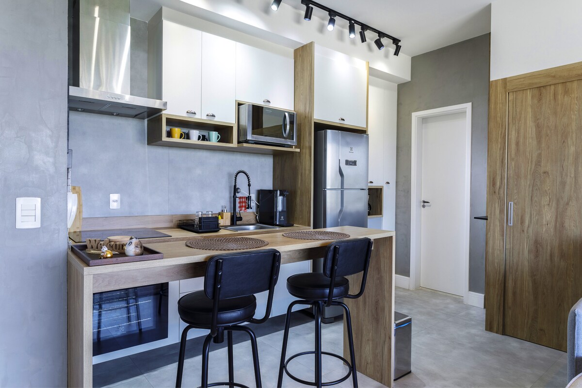 ¡Espacio perfecto en el Englishюcara, zona privilegiada de SBC! Tiene capacidad para 4 personas. Completo y acogedor, con cocina equipada, estación de trabajo, TV inteligente con acceso a streaming, cama tamaño queen, espejo icónico, calentador de toallas y decoración sofisticada. Cuenta con un área de servicio, habitación integrada y excelente ubicación: a 15 minutos de Sacomã - SP, a 50 minutos de Santos y a 22 minutos de São Caetano. El edificio no tiene garaje, pero los huéspedes y residentes a menudo estacionan en las calles cercanas con tranquilidad.
