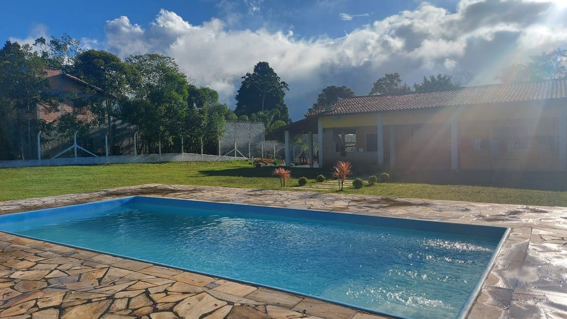 Casa de campo con ocio completo: piscinas para adultos y niños, cancha de fútbol, sala de juegos, edícula con parrilla, horno de pizza y estufa de leña, espacio para chimenea, sala de estar con chimenea, terraza de madera, parque infantil, pérgola, chimenea al aire libre con banco, zona de hamacas, 3 dormitorios, sala de TV y cocina integrada. Estacionamiento interno y paredes en todo el recinto. No aceptamos eventos con invitados externos, solo pequeños eventos entre los propios invitados.