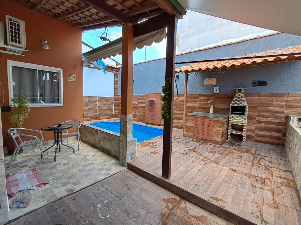 Linda Casa con suite y piscina en el centro de São Gonçalo RJ Cerca del centro comercial Partage. Lugar ideal para un momento romántico para la pareja. La casa tiene: Ropa de cama Cocina Refrigerador Airfryer (solicitud) ° Microondas; Electrodomésticos domésticos La casa es familiar. No se permite fumar dentro de la casa. Estacionamiento pequeño y compartido. El propietario vive cerca, para obtener ayuda cuando sea necesario. Nota: No ofrecemos toallas, ya que es un artículo de higiene personal.