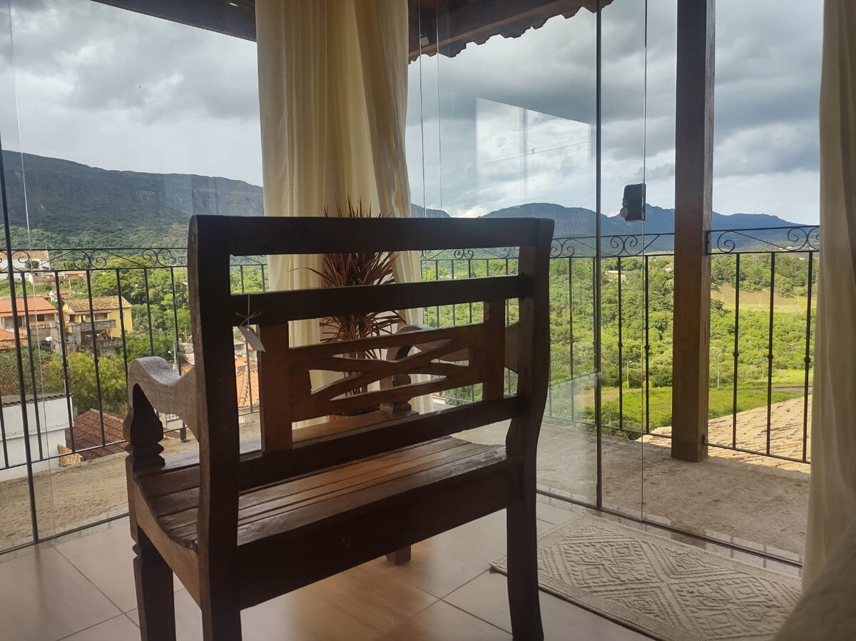 Cómoda casa decorada, con una hermosa vista a la Serra en una calle tranquila, cerca del centro histórico. Ideal para parejas con 2 hijos o grupos de amigos de hasta 4 personas. 2 suites con 2 baños, sala de estar y comedor, y cocina totalmente equipada. Ideal para familias, parejas o grupos de amigos.