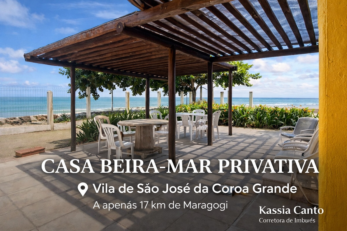 Relaxe com toda a família nesta vila tranquila à beira-mar, localizada em uma área mais reservada e segura, como um pequeno condomínio exclusivo. A casa fica em São José da Coroa Grande, ao lado do restaurante Calamares e a apenas 17 km de Maragogi. Ideal para quem busca descanso, privacidade e contato direto com o mar, com fácil acesso a restaurantes, vila e atrações da região. Aqui você acorda com o som das ondas e aproveita momentos únicos em um verdadeiro refúgio pé na areia.