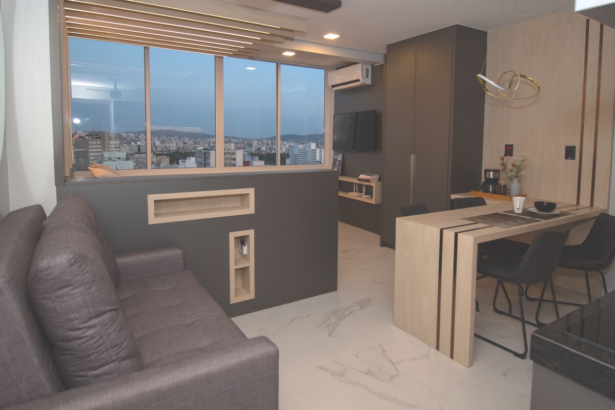 Maravilloso loft, decorado y equipado, con capacidad para alojar cómodamente hasta 3 huéspedes. Excelente ubicación en el centro de POA, edificio Coliving con sala de reuniones de conferencias, coworking, cocina, sala de estar y azotea con parrilla (espacios compartidos). Apartamento en una planta alta, súper acogedor y totalmente equipado: cama tamaño queen MUY cómoda, sofá cama, artículos de baño y cama, cocina, aire acondicionado, SmartTV y WiFi.