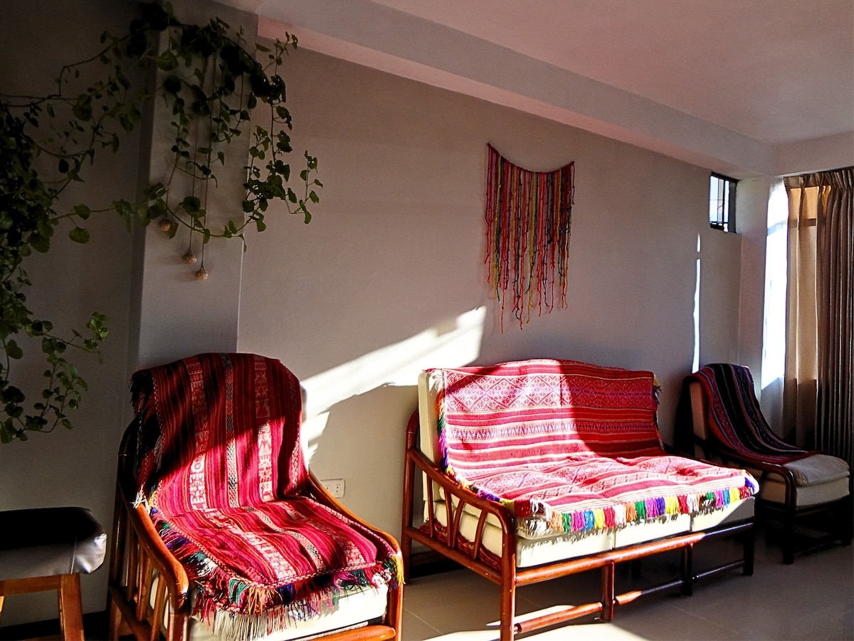 Cute Apartment with a beautiful view of Cusco. Located in the traditional neighborhood of San Blas,it's an ideal spot for couple-family. Righ here family-friendly activities, nightlife, interesting museums,lovely churches.We're just 10 min from the main square. You’ll love our space due to location, the comfy bed, the coziness,amazing view,home feeling.We can offer you AIRPORT PICKUP & TRANSFER,besides we also count with a reliable TRAVEL AGENCY with professional staff