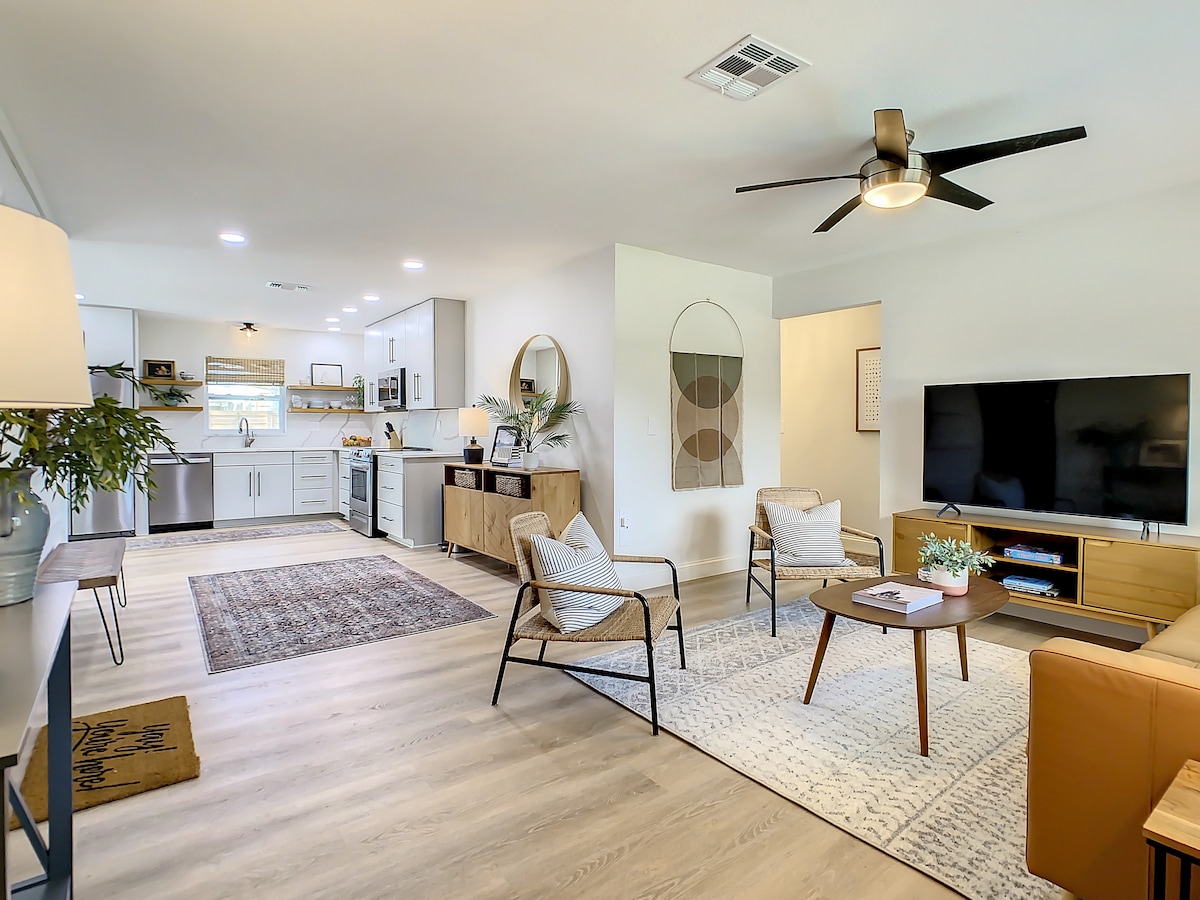 The Sunshine Suite.Lotes de luz natural en esta casa moderna totalmente actualizada de 3 dormitorios/1 baño.Es una vivienda completamente separada con entrada separada de la otra vivienda en la propiedad que no comparte paredes comunes. Termostato inteligente y cerradura de la puerta. Entrada sin llave. Nuevo aire acondicionado de marca, horno de gas, mostrador de cuarzo con salpicadero de mármol personalizado, muebles modernos y cómodos, área privada al aire libre, parrilla de barbacoa de gas, estacionamiento en la calle. ¡Gran ubicación! Minutos a la playa de Siesta Key, compras/UTC, interestatal, hospital y centro de la ciudad