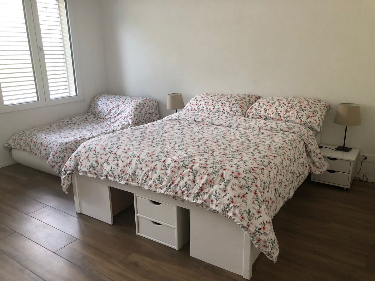 Bright 40m² studio close to nature, centrally located for access to Fribourg, Bern, and Lausanne. 💝 Entrance via private terrace 💝 Free parking, electric car charging station (CHF 20.-) 💝 Shop and SBB train station 900m away ⚠️ From October to April, if the night is cool, the noise of the heat pump may bother you. ⌛️ If your stay exceeds one week, we will need to access our laundry room from the studio, with your prior agreement.