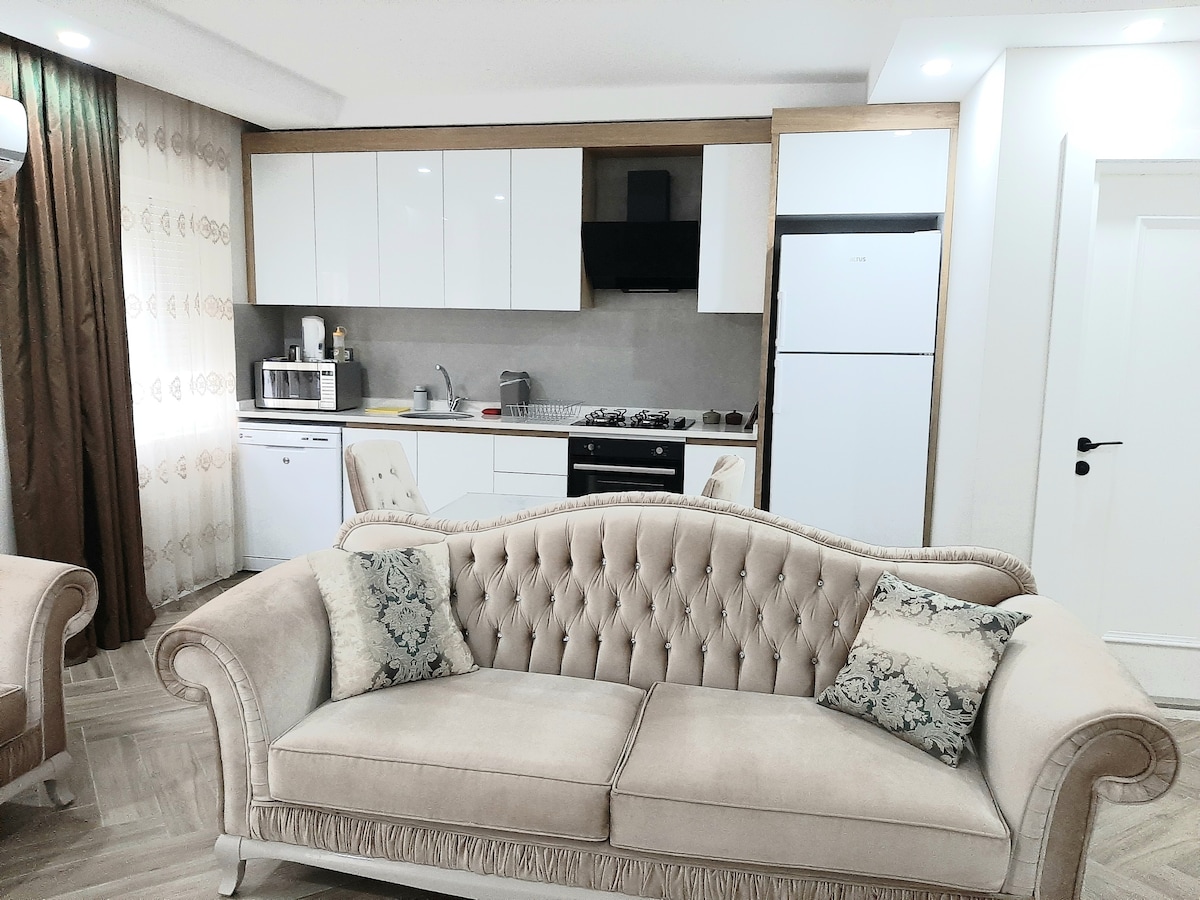 This is our 1 bedroom flat which is has a beatifull balcony. In this flat kitchen and living room are connected each other. We provide a high speed internet. In living room there is a sofa and also could be bed. -Vera Suites is 2 minutes away from Konyaaltı Beach and near all cafes&restaurants. -We can add an extra bed if needed . -We provide a free weekly cleaning for more than 5 days reservation. -We have a reception and security service 24 hours. You can reach us any time with every request