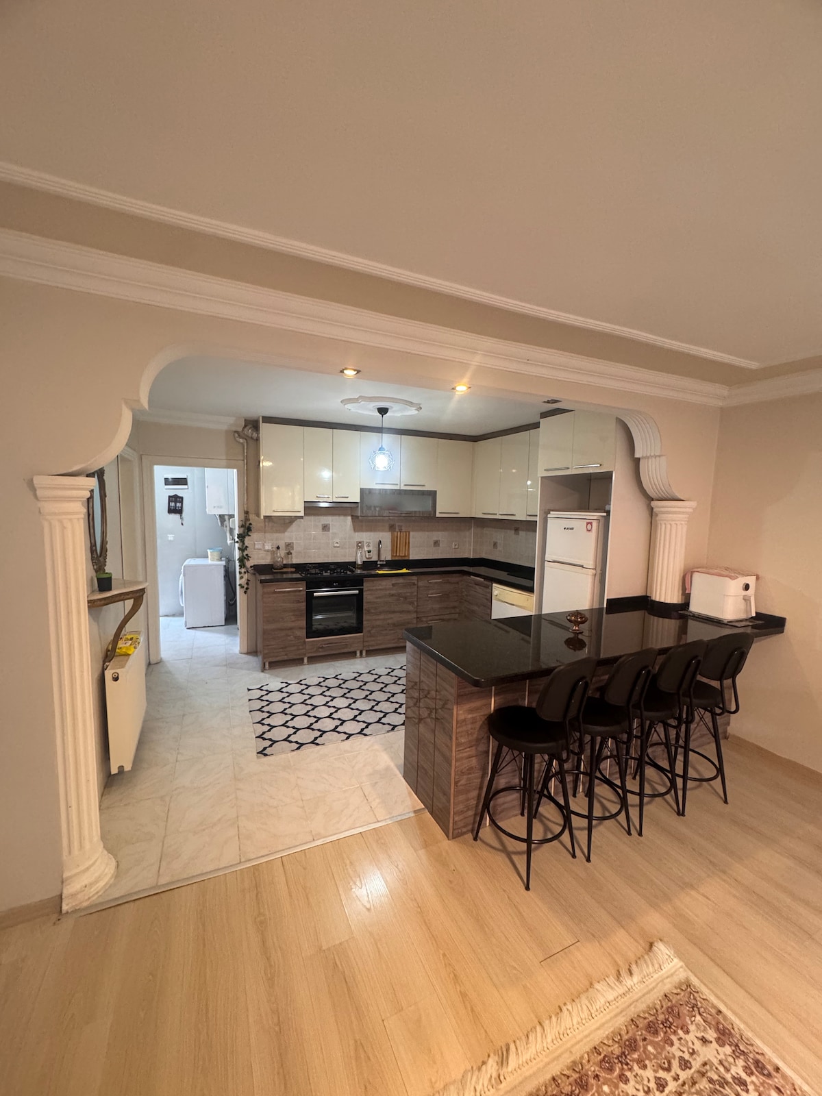 Situado en el corazón de Çanakkale, en una calle lateral del histórico bazar de Aynalı, y a pocos pasos del paseo marítimo y del muelle, nuestro alojamiento también ofrece fácil acceso a museos y playas. Puedes preparar tus propias comidas en nuestra cocina totalmente equipada o explorar los restaurantes circundantes. Te sentirás como en tu propia casa gracias al wifi gratuito, las habitaciones con aire acondicionado y las cómodas camas. En el centro de la ciudad, puedes relajarte en un entorno tranquilo y silencioso y aliviar el cansancio del día. Número de documento del permiso:17-000499