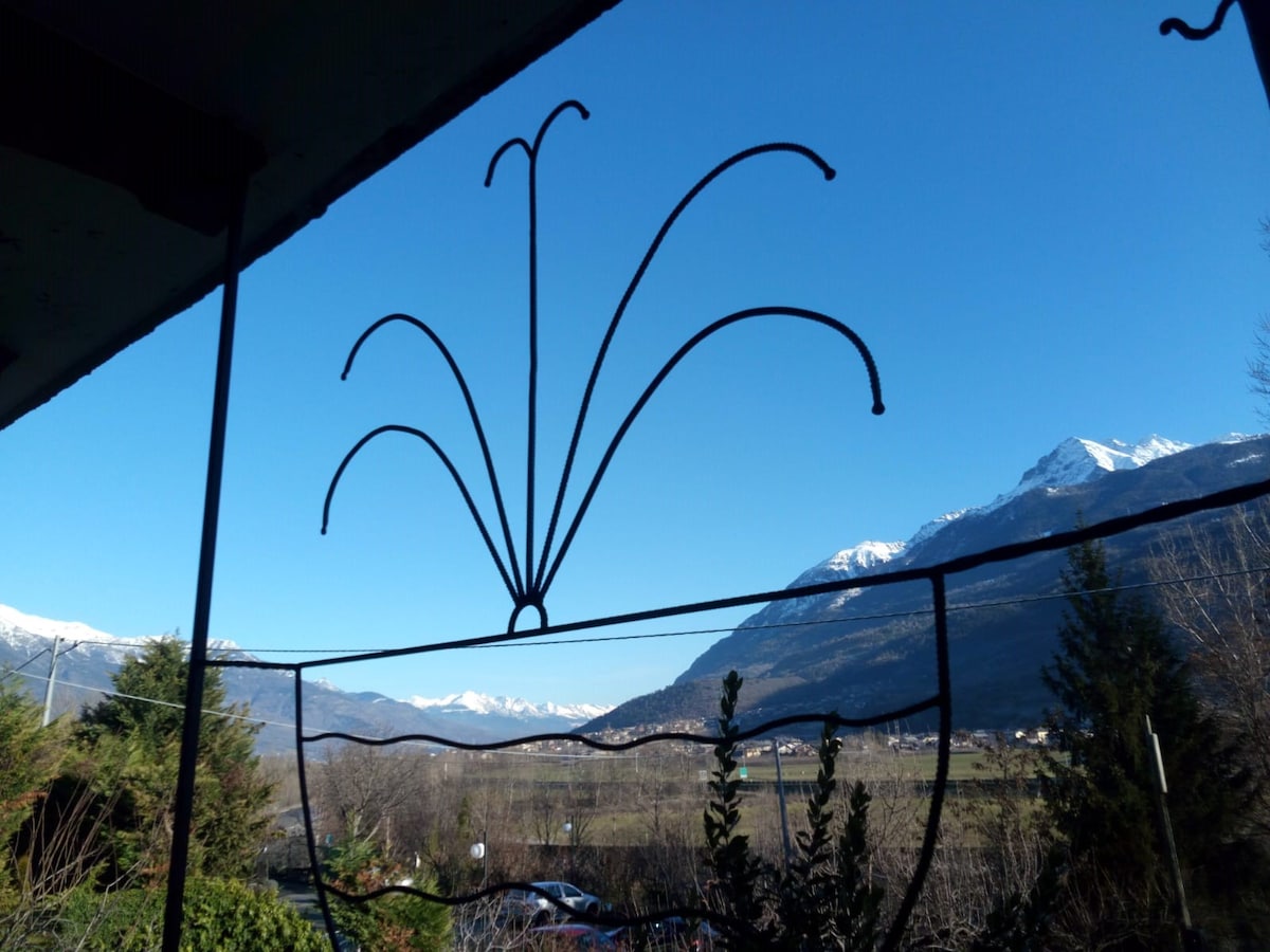 Encantador apartamento de dos habitaciones en un pueblo de montaña, pero a solo 10 minutos en coche de Aosta. Una base ideal para explorar el Valle de Aosta: ¡todas las atracciones turísticas están a 30 minutos! ¡El mercado, las paradas de autobús y la farmacia del pueblo están a pocos pasos!Cuenta con un baño, un dormitorio con vista al castillo de St.Pierre, comedor con sofá cama y vistas alpinas. Disfruta de un aperitivo o desayuno con vista al Mont Blanc en el balcón amueblado. Incluido en el precio: estacionamiento, Wi-Fi, ropa de cama, TV, lavadora.